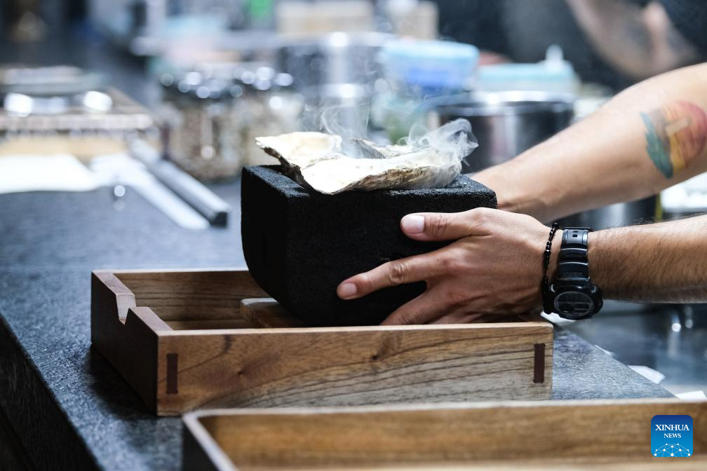 JALISCO, 21 octubre, 2024 (Xinhua) -- Imagen del 28 de septiembre de 2024 de chefs preparando el platillo "Leche de tigre" en el restaurante de comida mexicana Xokol, en Guadalajara, estado de Jalisco, México. El dulce aroma del maíz y del chile asado en comales de barro, fogones, y una mesa larga, en la que los comensales comparten deliciosos alimentos inspirados en la cocina ancestral mexicana, forman parte de Xokol, un espacio donde el acto de comer se convierte en un ritual. (Xinhua/Diana Márquez)