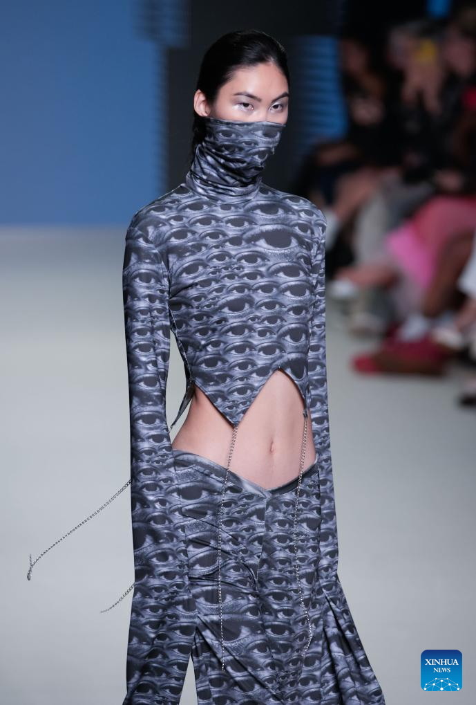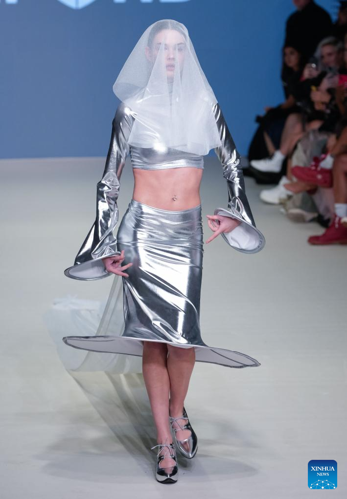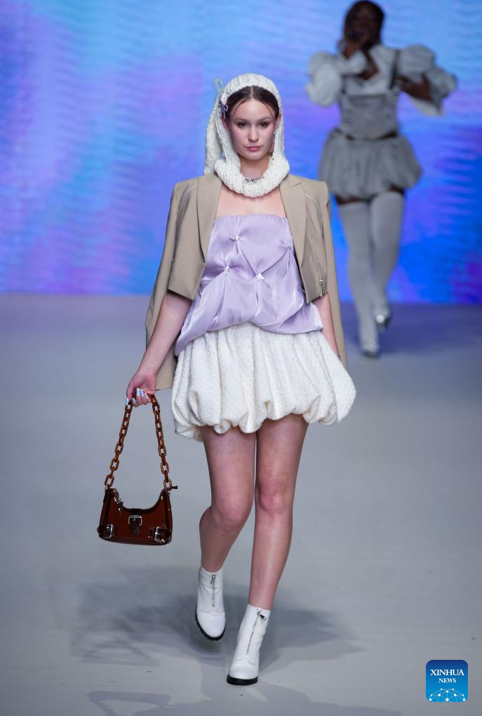 VANCOUVER, 23 octubre, 2024 (Xinhua) -- Imagen del 22 de octubre de 2024 de modelos presentando creaciones de la colección Primavera/Verano 2025 durante la Semana de la Moda de Vancouver, en Vancouver, Canadá. El evento se lleva a cabo del 22 al 27 de octubre. (Xinhua/Liang Sen)