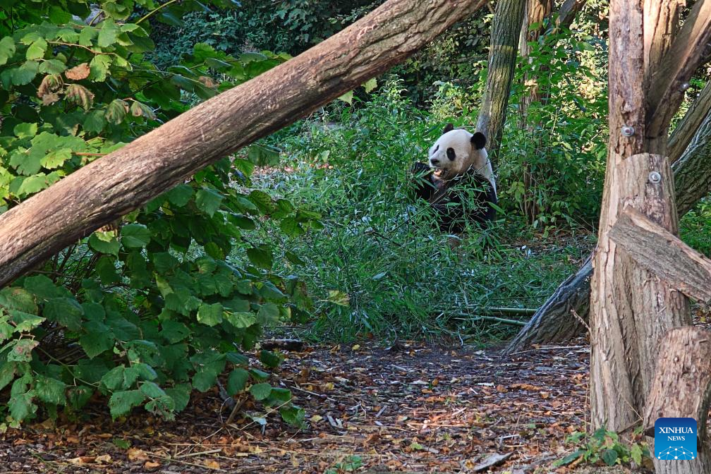 BRUGELETTE, 24 octubre, 2024 (Xinhua) -- Imagen del 13 de octubre de 2024 del panda gigante, Bao Di, visto en el zoológico Pairi Daiza, en Brugelette, Bélgica. El parque de animales belga Pairi Daiza anunció el 23 de octubre de 2024 que tres de sus cinco pandas regresarán a China el 10 de diciembre, como parte de un acuerdo con la Asociación para la Conservación de la Vida Silvestre de China. Tian Bao, nacido en 2016, y los gemelos Bao Di y Bao Mei, nacidos en 2019, regresarán a la Base de Pandas Gigantes en Bifengxia, un centro de investigación y crianza de pandas gigantes ubicado en la ciudad de Ya'an, en la provincia de Sichuan, en el suroeste de China. Los padres de los tres pandas, Hao Hao y Xing Hui, permanecerán en el parque, de acuerdo con Pairi Daiza. (Xinhua/Meng Dingbo)