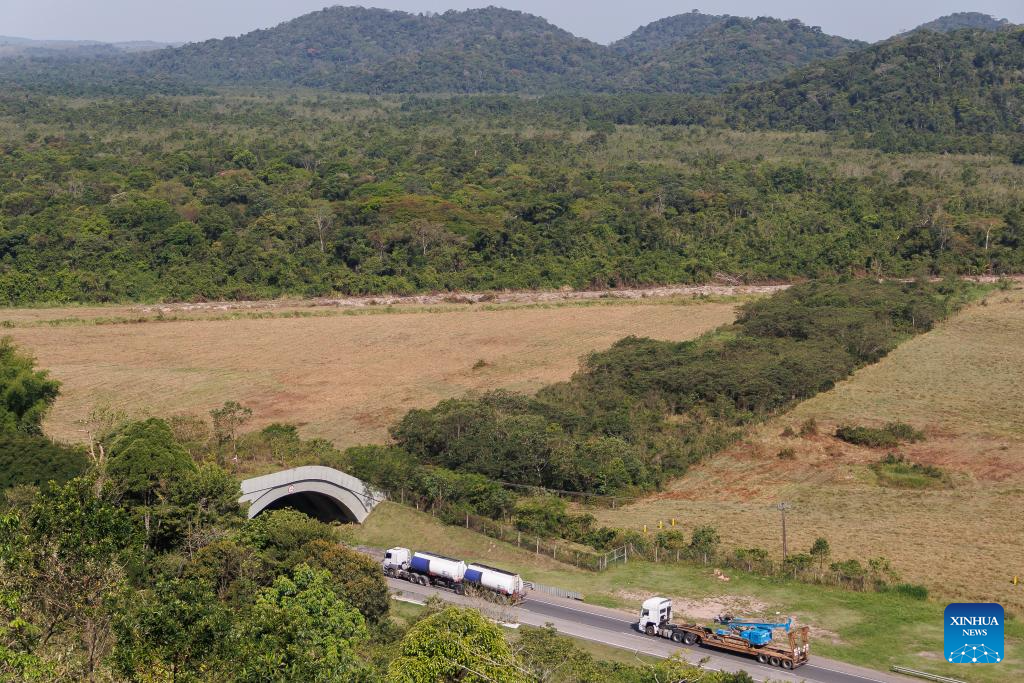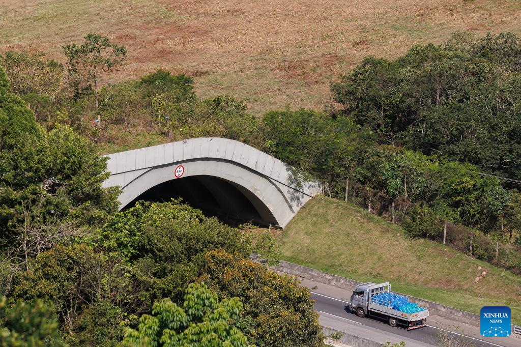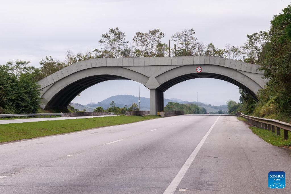 SILVA JARDIM, 25 octubre, 2024 (Xinhua) -- Imagen del 24 de octubre de 2024 de un puente verde, un paso de fauna que ayuda a los animales silvestres a un cruce seguro, en la carretera BR-101, en Silva Jardim, en el estado de Río de Janeiro, Brasil. (Xinhua/Claudia Martini)
