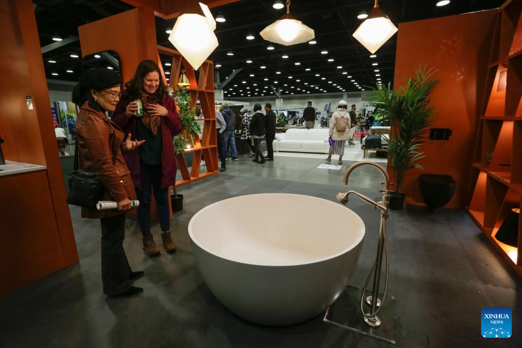 VANCOUVER, 25 octubre, 2024 (Xinhua) -- Imagen del 24 de octubre de 2024 de visitantes observando una tina durante el "Vancouver Fall Home Show 2024", en el Centro de Convenciones de Vancouver, en Vancouver, Columbia Británica, Canadá. El evento de cuatro días de duración comenzó el jueves, con más de 300 expositores mostrando sus últimos productos y servicios. (Xinhua/Liang Sen)