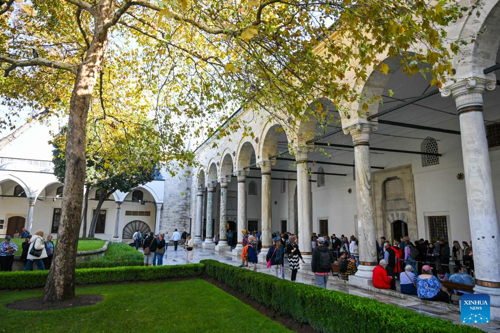ESTAMBUL, 25 octubre, 2024 (Xinhua) -- Imagen del 23 octubre de 2024 de turistas visitando el Museo del Palacio Topkapi, en Estambul, Turquía. El Palacio Topkapi fue el palacio del Imperio Otomano desde el siglo XV hasta el XIX. En 1924, el palacio se convirtió en el Museo del Palacio Topkapi. El museo alberga ahora numerosos tesoros, incluida porcelana de China. (Xinhua/Liu Lei)