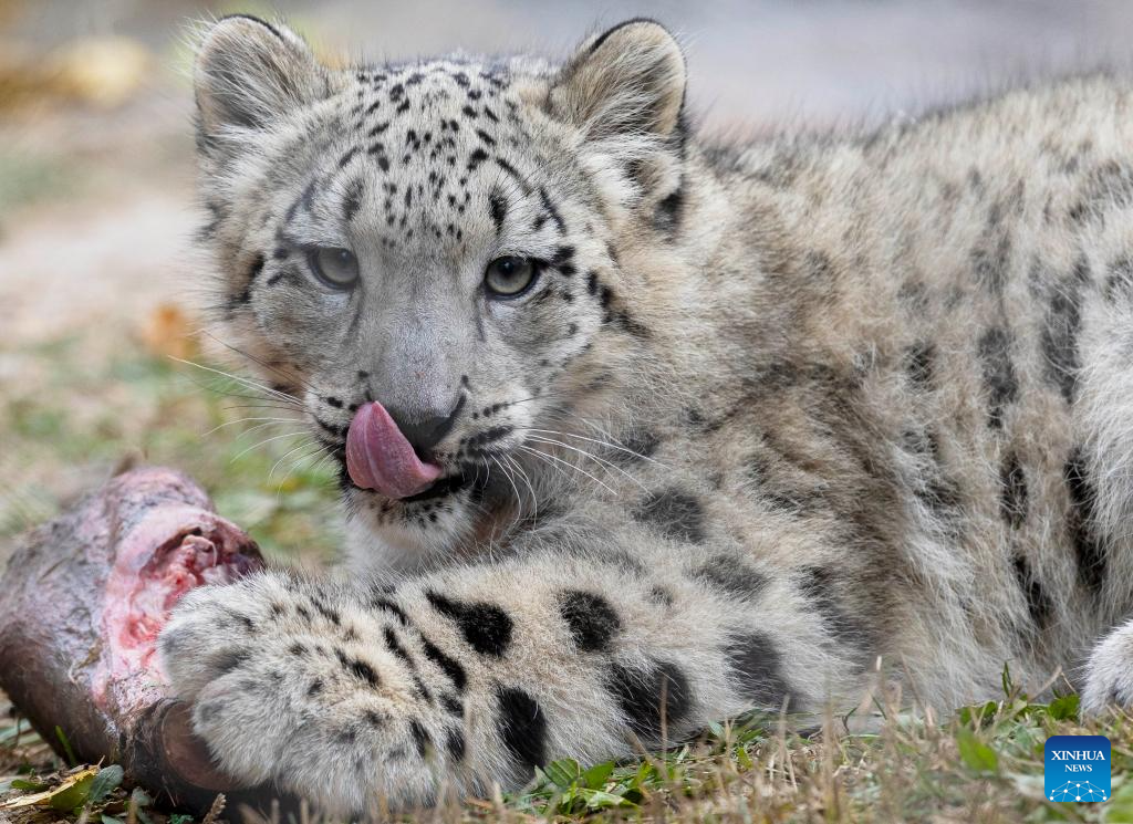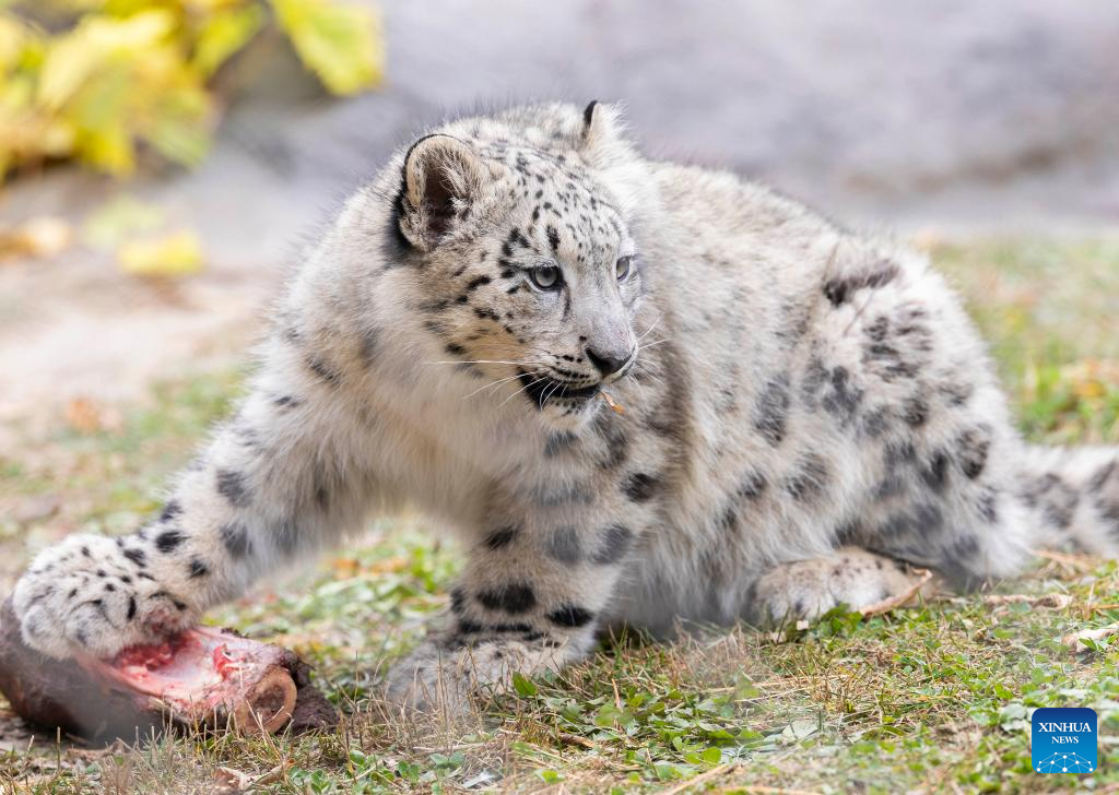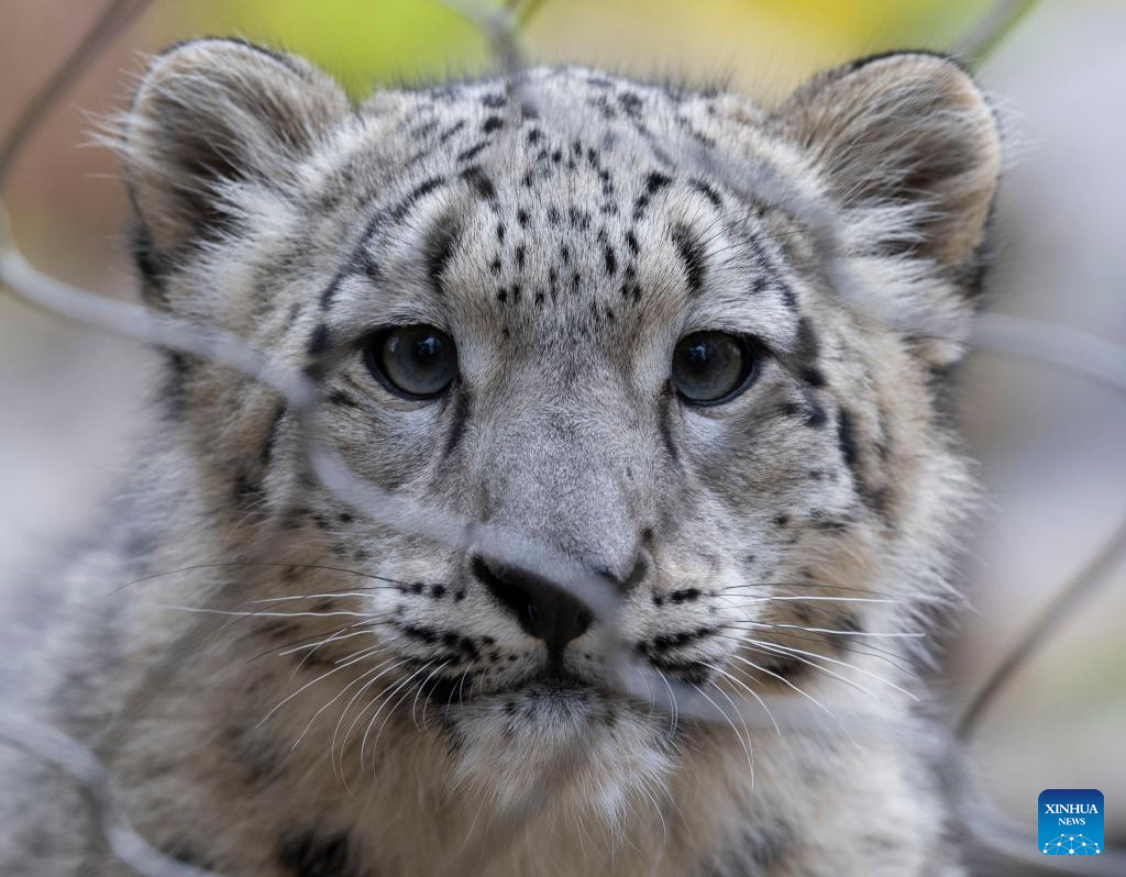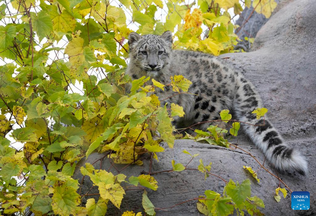 TORONTO, 25 octubre, 2024 (Xinhua) -- Un cachorro de leopardo de las nieves de cinco meses de edad es visto en el Zoológico de Toronto, en Toronto, Canadá, el 25 de octubre de 2024. Dos cachorros de leopardo de las nieves fueron presentados a los medios de comunicación y a miembros aquí el viernes y harán su debut público el 26 de octubre. (Xinhua/Zou Zheng)