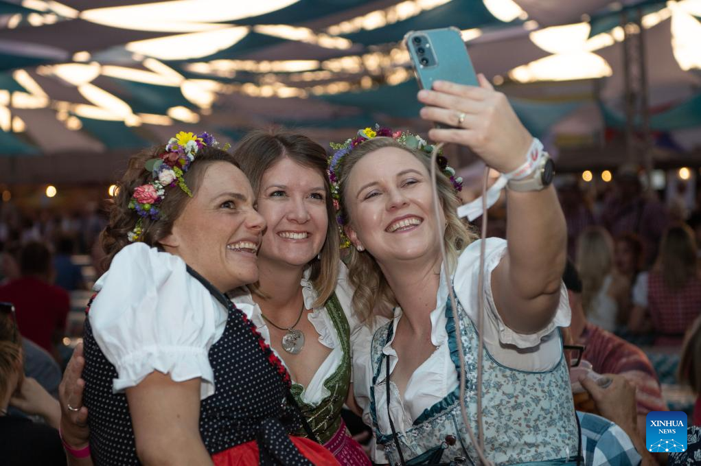 WINDHOEK, 26 octubre, 2024 (Xinhua) -- Imagen del 25 de octubre de 2024 de personas tomándose fotografías en el Oktoberfest de Windhoek, en Windhoek, Namibia. La 64º edición del Oktoberfest de Windhoek comenzó el viernes en la capital namibia, Windhoek. (Xinhua/Chen Cheng)
