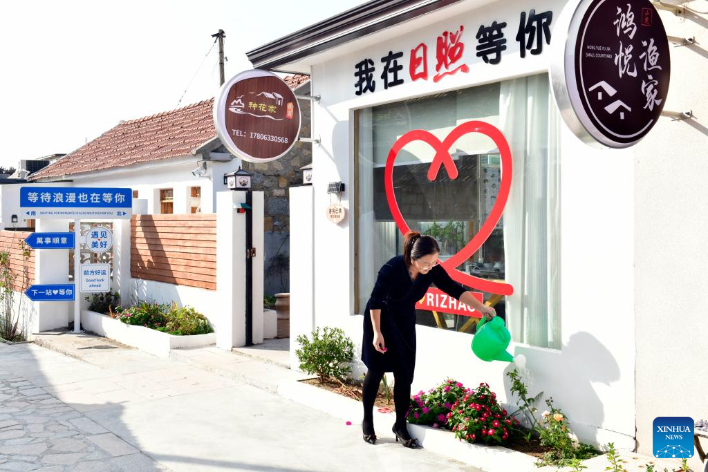 RIZHAO, 27 octubre, 2024 (Xinhua) -- Imagen del 25 de octubre de 2024 de la operadora de alojamiento familiar, Li Li, trabajando en su alojamiento en el complejo turístico Shan Hai Tian, en Rizhao, en la provincia de Shandong, en el este de China. El complejo turístico Shan Hai Tian, cuyo nombre es traducido literal como "Montaña, Mar y Cielo", se ubica en la costa del mar Amarillo, en el este de China. Ha desarrollado un servicio de alojamiento en familias aprovechando las montañas, la costa y los jardines de té del lugar para mejorar tanto la experiencia turística como los ingresos comerciales. (Xinhua/Yang Guang)