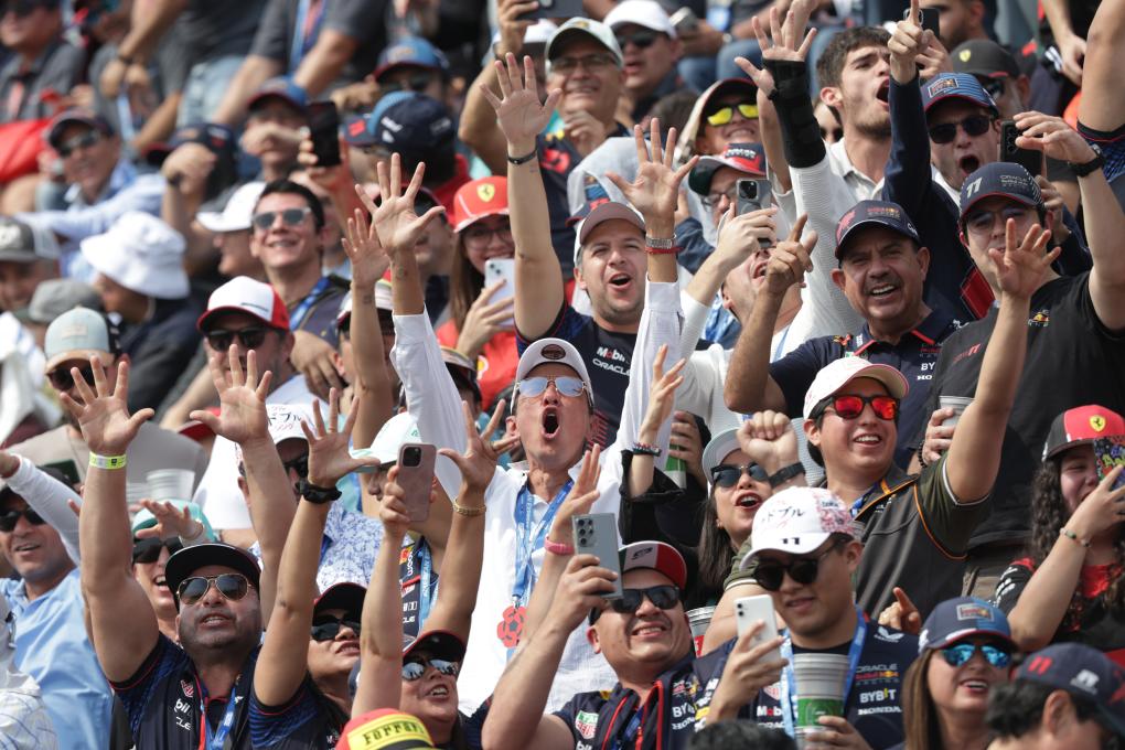 CIUDAD DE MEXICO, 28 octubre, 2024 (Xinhua) -- Imagen del 27 de octubre de 2024 de espectadores animando durante la carrera del Gran Premio de México de Fórmula Uno en el Autódromo Hermanos Rodríguez, en la Ciudad de México, capital de México. (Xinhua/Francisco Cañedo)