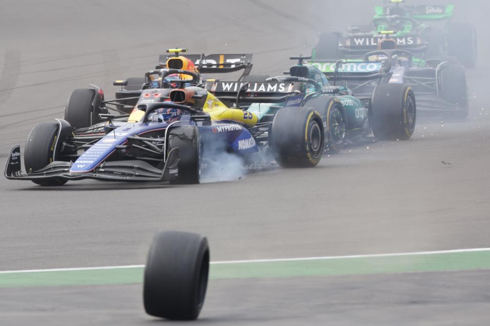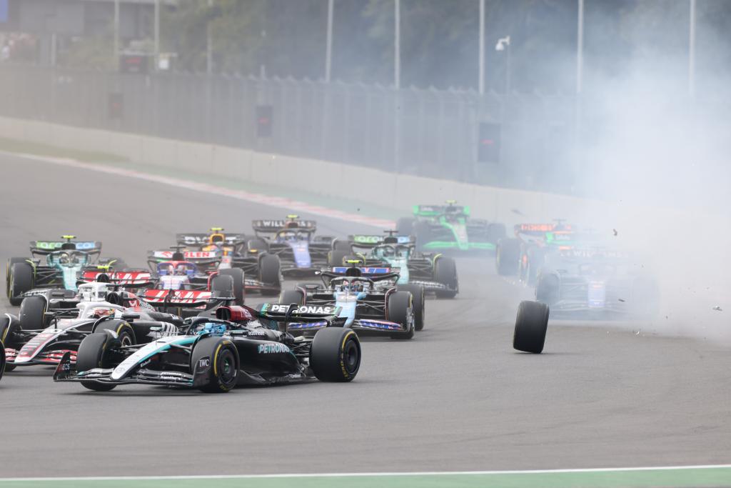 CIUDAD DE MEXICO, 28 octubre, 2024 (Xinhua) -- Imagen del 27 de octubre de 2024 de pilotos compitiendo después del accidente del piloto japonés de la escudería RB, Yuki Tsunoda, durante la carrera del Gran Premio de México de Fórmula Uno en el Autódromo Hermanos Rodríguez, en la Ciudad de México, capital de México. (Xinhua/Francisco Cañedo)
