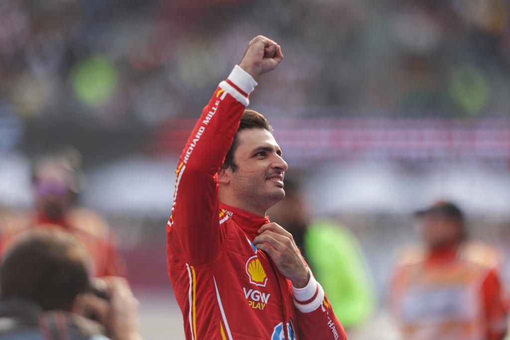 CIUDAD DE MEXICO, 28 octubre, 2024 (Xinhua) -- Imagen del 27 de octubre de 2024 del piloto español de la escudería Ferrari, Carlos Sainz, reaccionando previo a la carrera del Gran Premio de México de Fórmula Uno en el Autódromo Hermanos Rodríguez, en la Ciudad de México, capital de México. (Xinhua/Li Mengxin)