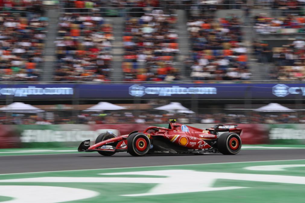 CIUDAD DE MEXICO, 28 octubre, 2024 (Xinhua) -- Imagen del 27 de octubre de 2024 del piloto español de la escudería Ferrari, Carlos Sainz, compitiendo durante la carrera del Gran Premio de México de Fórmula Uno en el Autódromo Hermanos Rodríguez, en la Ciudad de México, capital de México. (Xinhua/Li Mengxin)