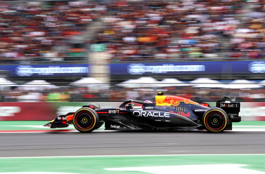 CIUDAD DE MEXICO, 28 octubre, 2024 (Xinhua) -- Imagen del 27 de octubre de 2024 del piloto mexicano de la escudería Red Bull, Sergio Pérez, compitiendo durante la carrera del Gran Premio de México de Fórmula Uno en el Autódromo Hermanos Rodríguez, en la Ciudad de México, capital de México. (Xinhua/Li Mengxin)