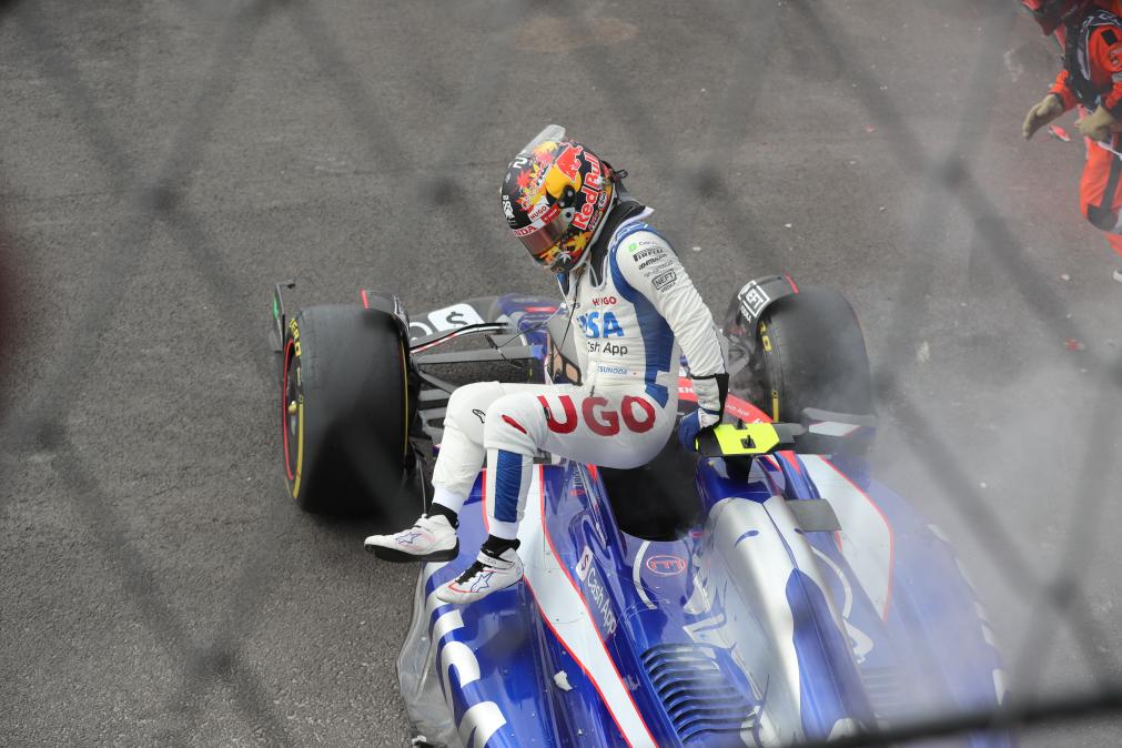 CIUDAD DE MEXICO, 28 octubre, 2024 (Xinhua) -- Imagen del 27 de octubre de 2024 del piloto japonés de la escudería RB, Yuki Tsunoda, saliendo de su monoplaza después de estrellarse durante la carrera del Gran Premio de México de Fórmula Uno en el Autódromo Hermanos Rodríguez, en la Ciudad de México, capital de México. (Xinhua/Li Mengxin)
