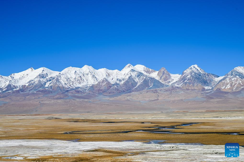 ATUX, 28 octubre, 2024 (Xinhua) -- Imagen del 20 de octubre de 2024 de la vista de las montañas nevadas vistas en el municipio de Muji, del distrito de Akto, en la prefectura autónoma kirguís de Kizilsu, en la región autónoma uygur de Xinjiang, en el noroeste de China. Una expedición científica multidisciplinaria de ocho días de duración fue lanzada el 19 de octubre en la ciudad de Atux, en Xinjiang. Durante la expedición, los científicos llevaron a cabo investigaciones en caminos antiguos, sitios históricos e importantes marcas geográficas en la prefectura autónoma kirguís de Kizilsu en Xinjiang. (Xinhua/Ding Lei)