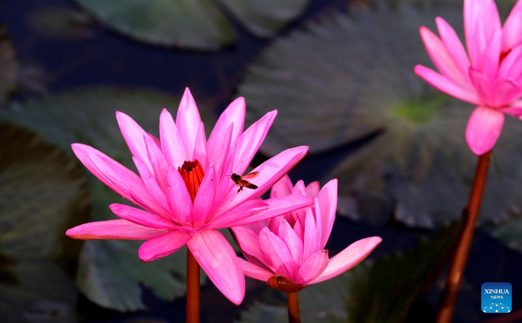 BHOPAL, 29 octubre, 2024 (Xinhua) -- Lirios de acuáticos en flor son vistos en un estanque, en Bhopal, capital del estado de Madhya Pradesh, India, el 29 de octubre de 2024. (Xinhua/Str)