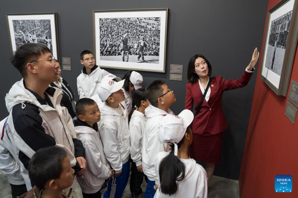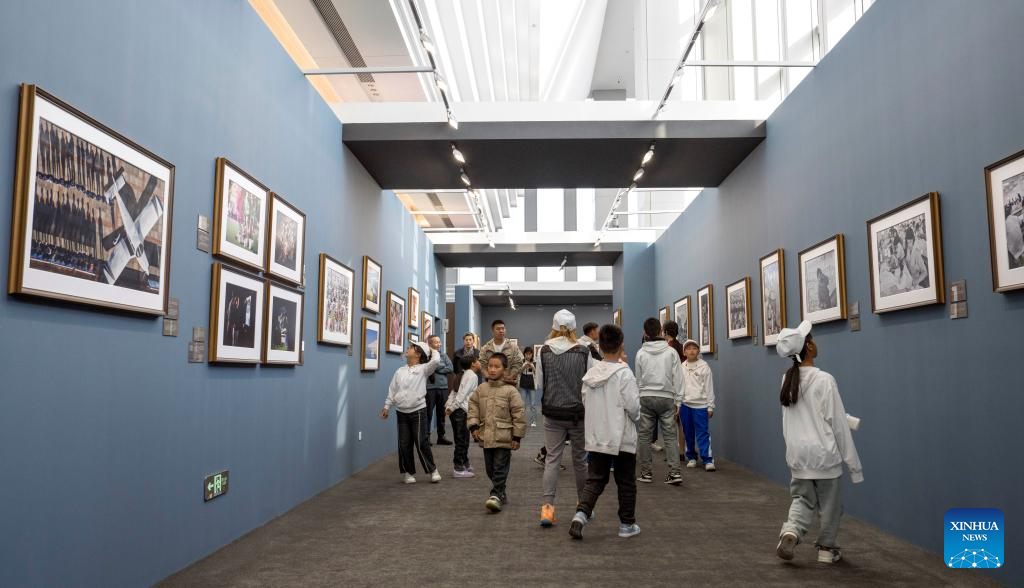 BEIJING, 30 octubre, 2024 (Xinhua) -- Estudiantes y profesores visitan una exposición fotográfica celebrada en el Centro Nacional de Información Financiera, en Beijing, capital de China, el 30 de octubre de 2024. La exposición, organizada por la agencia nacional de noticias de China, Xinhua, documenta la transformación histórica del país en las últimas décadas. En la muestra se exhiben casi 500 fotografías que abarcan diversos períodos históricos, seleccionadas de la colección de Xinhua, el archivo fotográfico más grande del país, con más de 10 millones de imágenes. (Xinhua/Cai Yang)