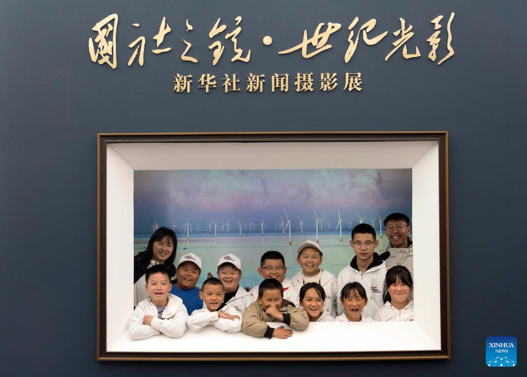 BEIJING, 30 octubre, 2024 (Xinhua) -- Estudiantes y profesores posan para una fotografía grupal en una exposición fotográfica celebrada en el Centro Nacional de Información Financiera, en Beijing, capital de China, el 30 de octubre de 2024. La exposición, organizada por la agencia nacional de noticias de China, Xinhua, documenta la transformación histórica del país en las últimas décadas. En la muestra se exhiben casi 500 fotografías que abarcan diversos períodos históricos, seleccionadas de la colección de Xinhua, el archivo fotográfico más grande del país, con más de 10 millones de imágenes. (Xinhua/Cai Yang)