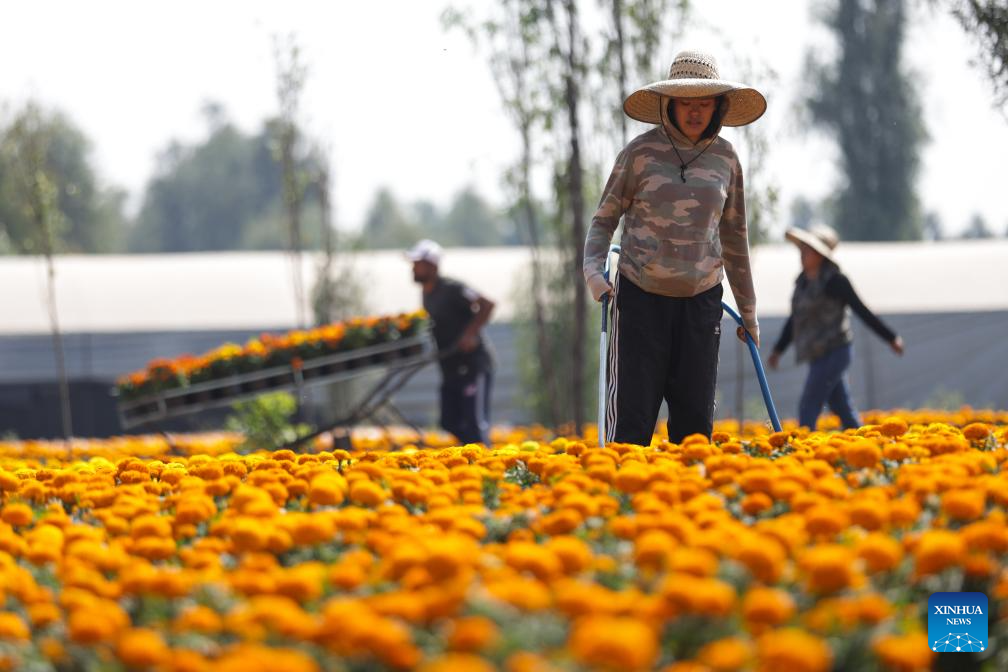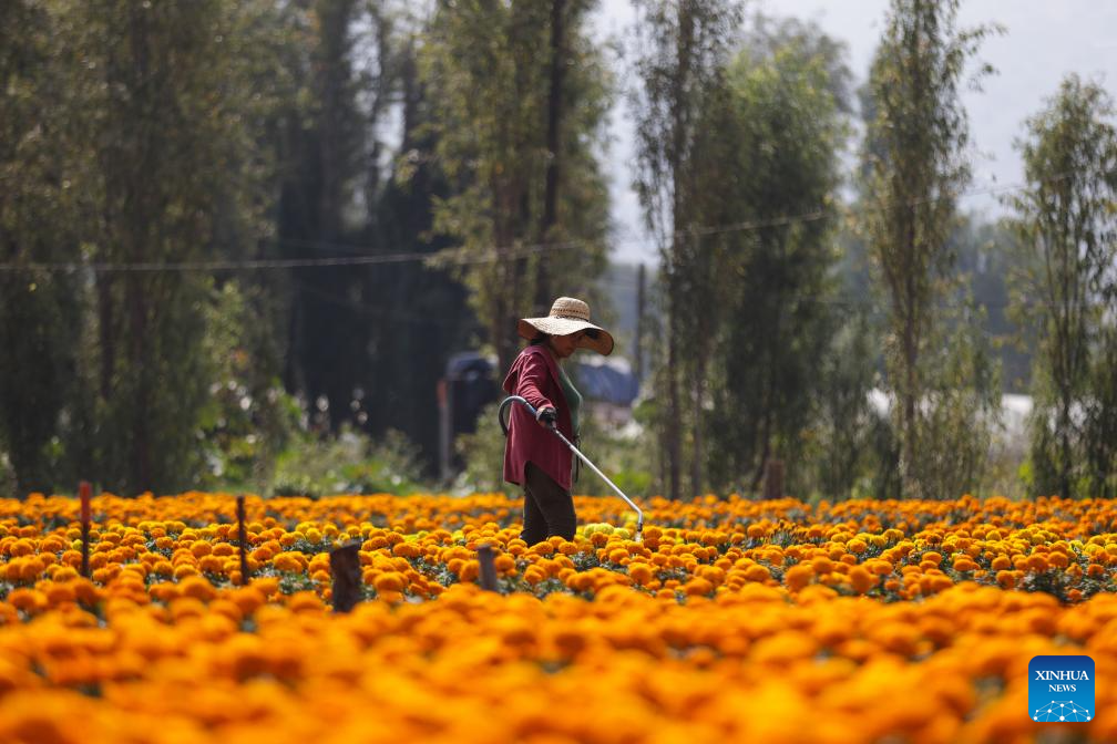 CIUDAD DE MEXICO, 30 octubre, 2024 (Xinhua) -- Imagen del 29 de octubre de 2024 de un campo de flores de cempasúchil, un elemento tradicional para las ofrendas de Día de Muertos, en la Ciudad de México, capital de México. (Xinhua/Francisco Cañedo)