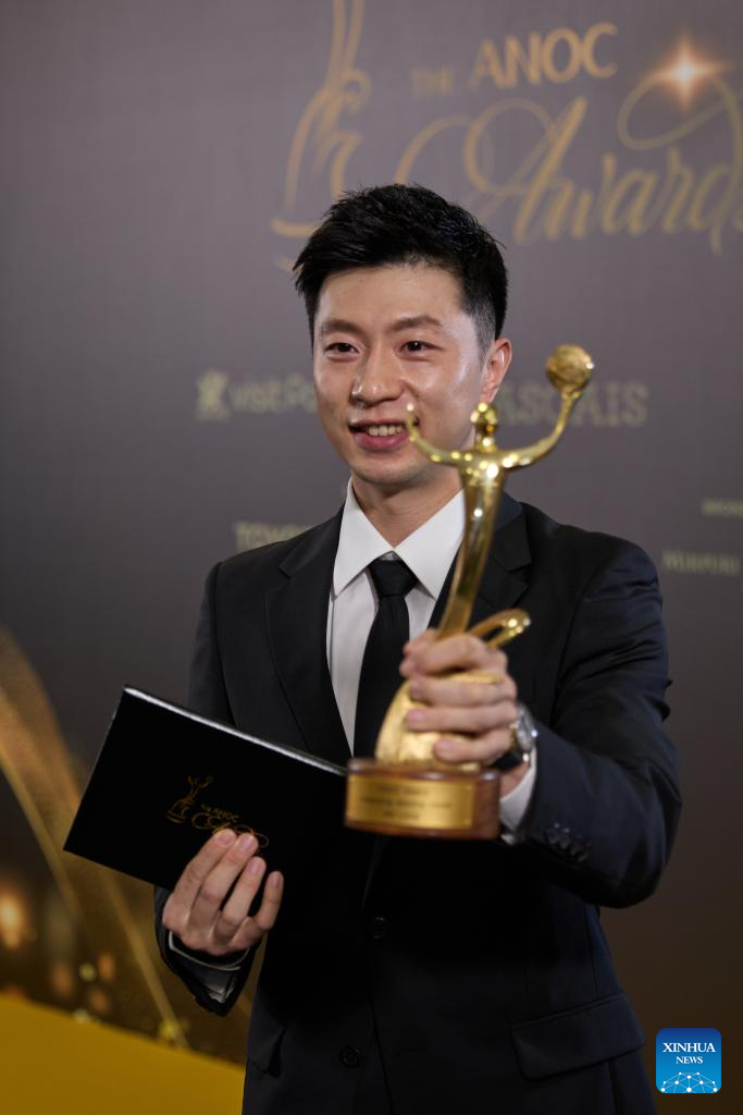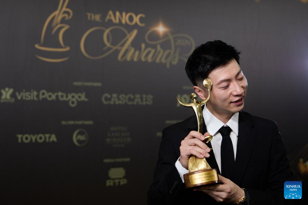 CASCAIS, 31 octubre, 2024 (Xinhua) -- Imagen del 30 de octubre de 2024 del ícono del tenis de mesa chino, Ma Long, posando para una fotografía después de recibir el premio ANOC a la Trayectoria Deportiva Destacada durante la ceremonia de entrega de premios de la Asociación de Comités Olímpicos Nacionales (ANOC, por sus siglas en inglés) 2024, en Cascais, Portugal. (Xinhua/Meng Dingbo)