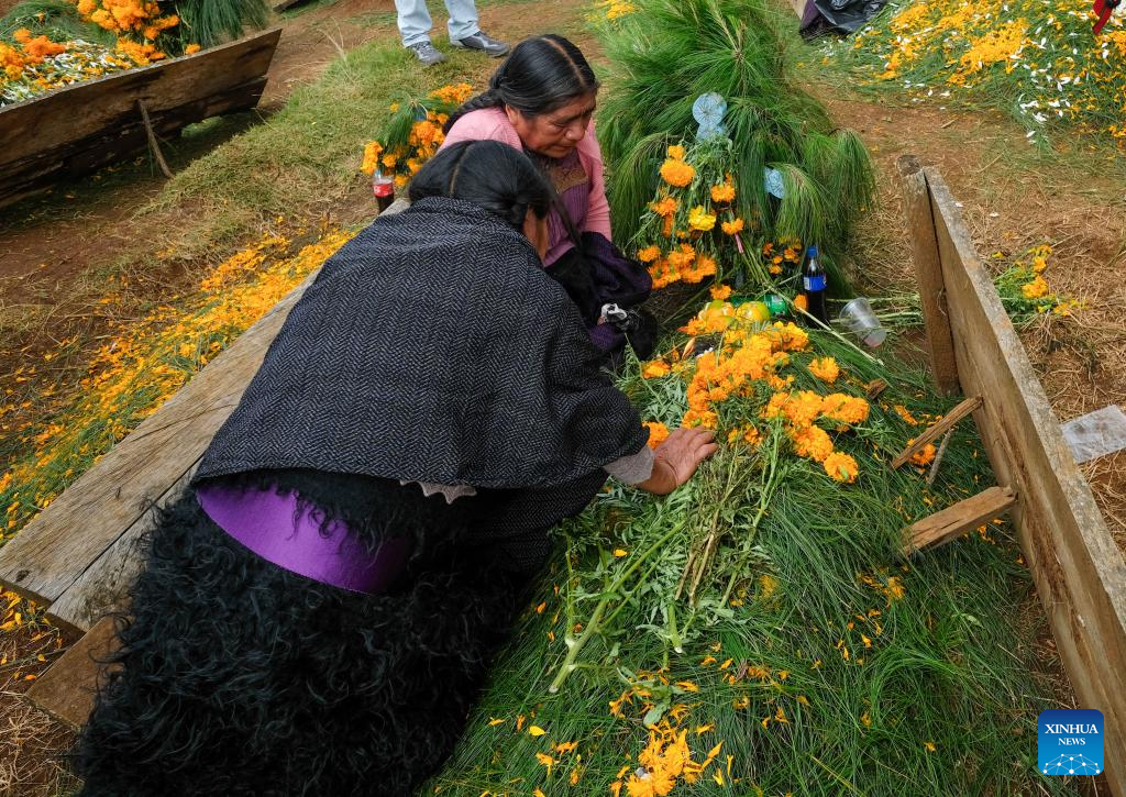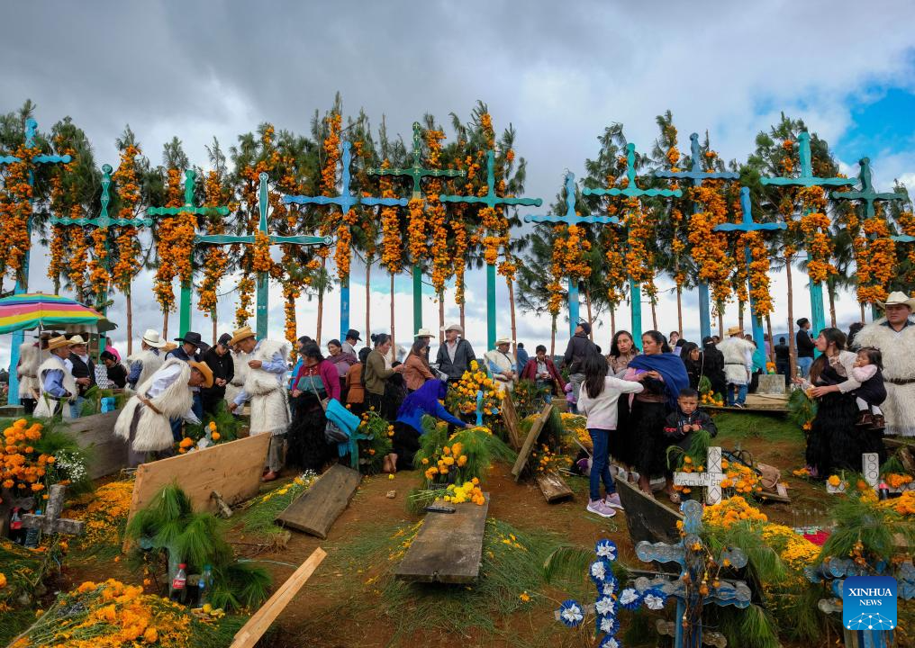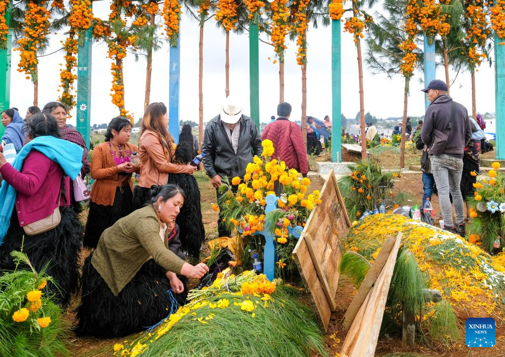 CHIAPAS, 1 noviembre, 2024 (Xinhua) -- Indígenas tzotziles participan en una celebración con motivo del Día de Muertos, en un panteón en la comunidad de Romerillo, estado de Chiapas, en el sureste de México, el 1 de noviembre de 2024. (Xinhua/Elizabeth Ruíz)