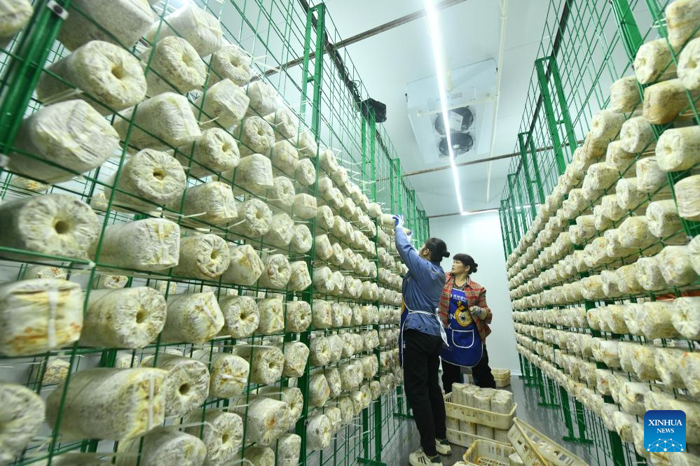 BAISE, 1 noviembre, 2024 (Xinhua) -- Imagen del 29 de octubre de 2024 de aldeanas trabajando en una base de plantación inteligente de hongos, en la aldea de Nazao del distrito de Debao, en la ciudad de Baise, en la región autónoma zhuang de Guangxi, en el sur de China. En los últimos años, la aldea de Nazao, en la ciudad de Baise de la región autónoma zhuang de Guangxi, ha construido de manera efectiva una moderna base industrial para el cultivo de hongos. Al utilizar tecnología avanzada de control de temperatura y humedad, el proceso de cultivo es más científico y productivo, lo que aumenta en gran medida los ingresos de los agricultores locales. (Xinhua/Huang Xiaobang)