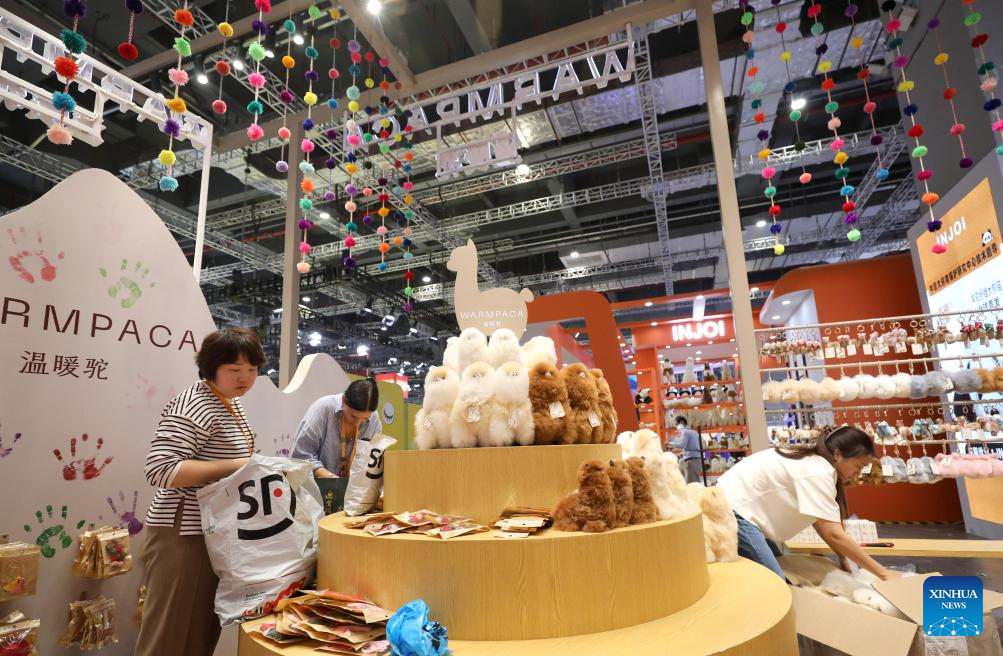 SHANGHAI, 2 noviembre, 2024 (Xinhua) -- Expositoras realizan preparativos en el Centro Nacional de Exposiciones y Convenciones (Shanghai), la sede principal de la VII Exposición Internacional de Importaciones de China (CIIE, siglas en inglés), en Shanghai, en el este de China, el 2 de noviembre de 2024. Los preparativos para la VII CIIE están casi terminados y el evento se celebrará del 5 al 10 de noviembre en Shanghai. (Xinhua/Fang Zhe)