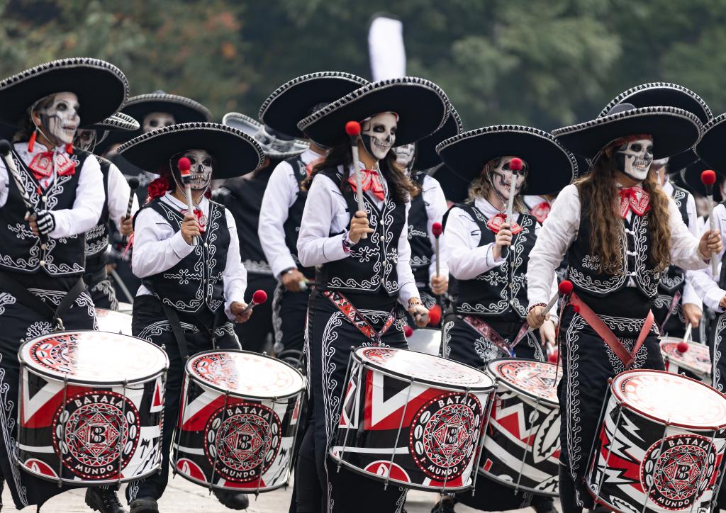 CIUDAD DE MÉXICO, 3 noviembre, 2024 (Xinhua) -- Imagen del 2 de noviembre de 2024 de personas portando disfraces y maquillaje facial mientras participan en el Desfile del Día de Muertos, en el centro de la Ciudad de México, capital de México. (Xinhua/Li Mengxin)