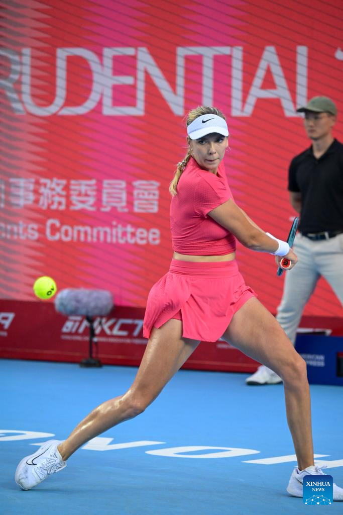HONG KONG, 3 noviembre, 2024 (Xinhua) -- Katie Boulter devuelve la pelota durante el partido final de individuales femeninos entre Diana Shnaider, de Rusia, y Katie Boulter, de Reino Unido, en el Abierto de Tenis de Hong Kong de la WTA250, en Hong Kong, en el sur de China, el 3 de noviembre de 2024. (Xinhua/Zhu Wei)