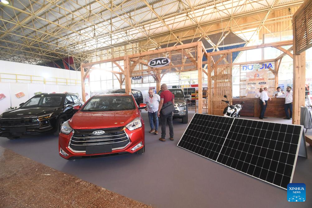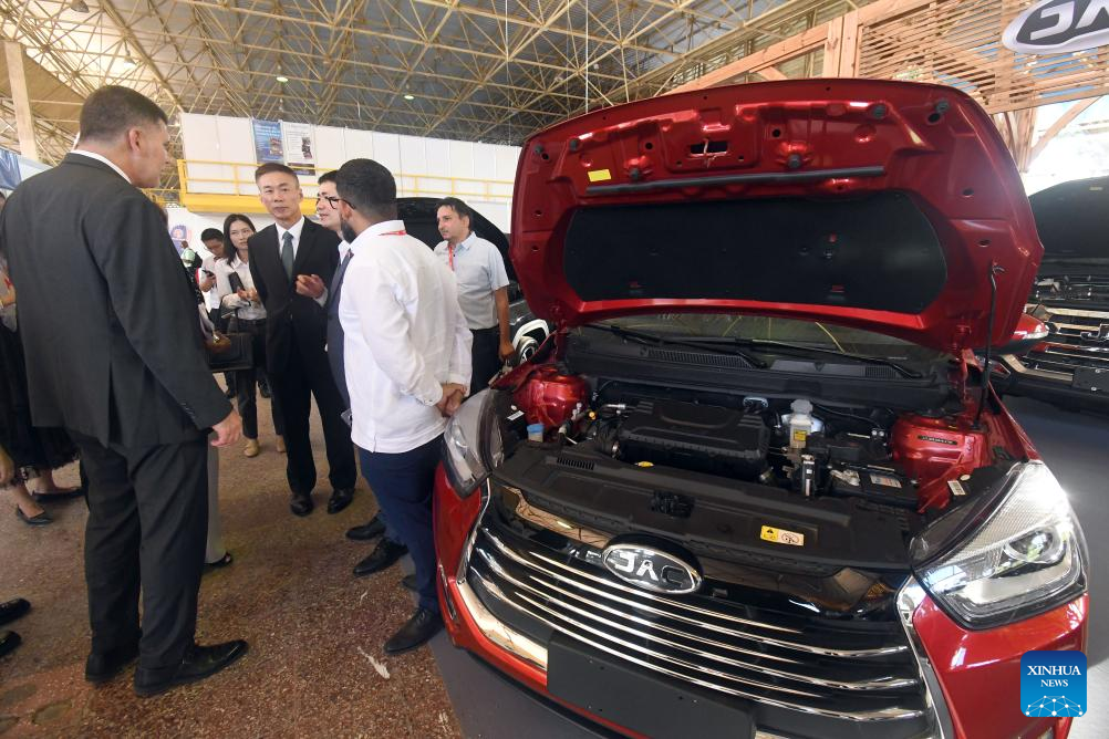 Imagen del 4 de noviembre de 2024 de personas observando un automóvil exhibido en el estand de China durante la 40ª edición de la Feria Internacional de La Habana (FIHAV 2024) en el recinto ferial Expocuba, en La Habana, capital de Cuba. Los gobiernos de Cuba y China ratificaron la víspera su voluntad de continuar estrechando sus vínculos económicos durante la celebración del Día de la República Popular China en la 40ª edición de la FIHAV 2024. (Xinhua/Joaquín Hernández)