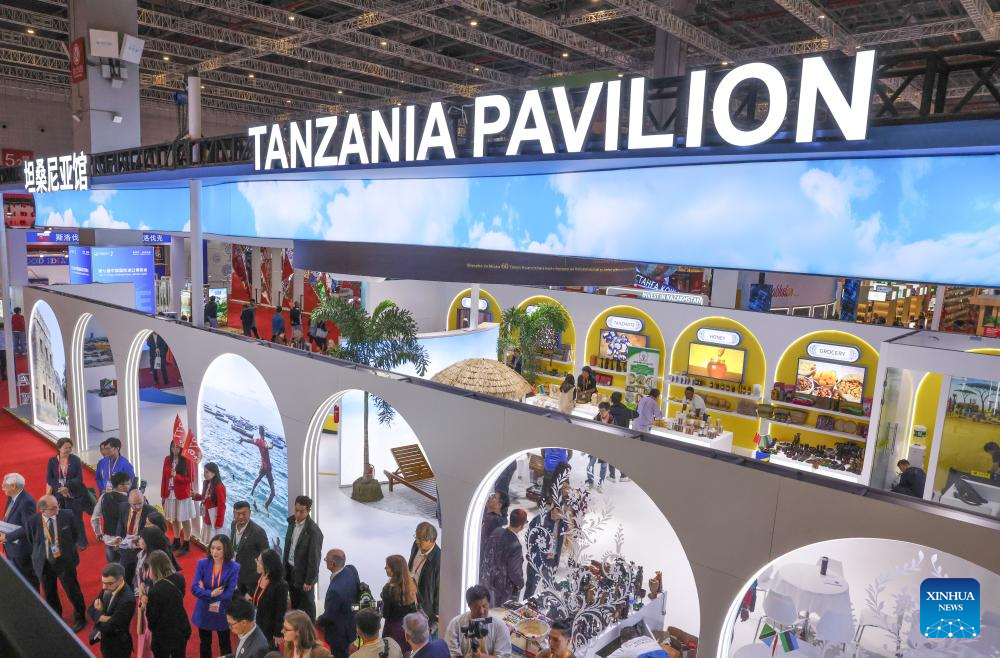 SHANGHAI, 5 noviembre, 2024 (Xinhua) -- Imagen del 5 de noviembre de 2024 del pabellón de Tanzania durante la VII Exposición Internacional de Importaciones de China (CIIE, por siglas en inglés), en Shanghai, en el este de China. Una nueva edición de la CIIE, la primera de su tipo en el mundo dedicada a las importaciones, abrió sus puertas el martes en Shanghai. Francia, Malasia, Nicaragua, Arabia Saudita, Tanzania y Uzbekistán son los países invitados de honor en la VII CIIE. (Xinhua/Yin Gang)