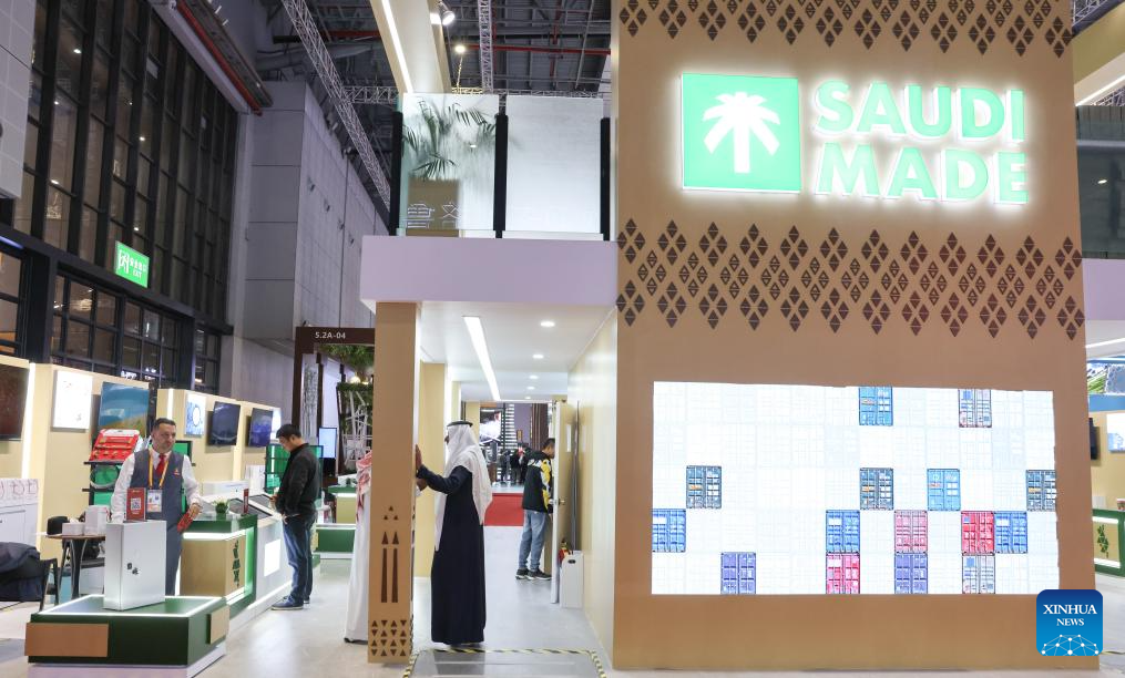 SHANGHAI, 5 noviembre, 2024 (Xinhua) -- Imagen del 5 de noviembre de 2024 del pabellón de Arabia Saudita durante la VII Exposición Internacional de Importaciones de China (CIIE, por siglas en inglés), en Shanghai, en el este de China. Una nueva edición de la CIIE, la primera de su tipo en el mundo dedicada a las importaciones, abrió sus puertas el martes en Shanghai. Francia, Malasia, Nicaragua, Arabia Saudita, Tanzania y Uzbekistán son los países invitados de honor en la VII CIIE. (Xinhua/Yin Gang)