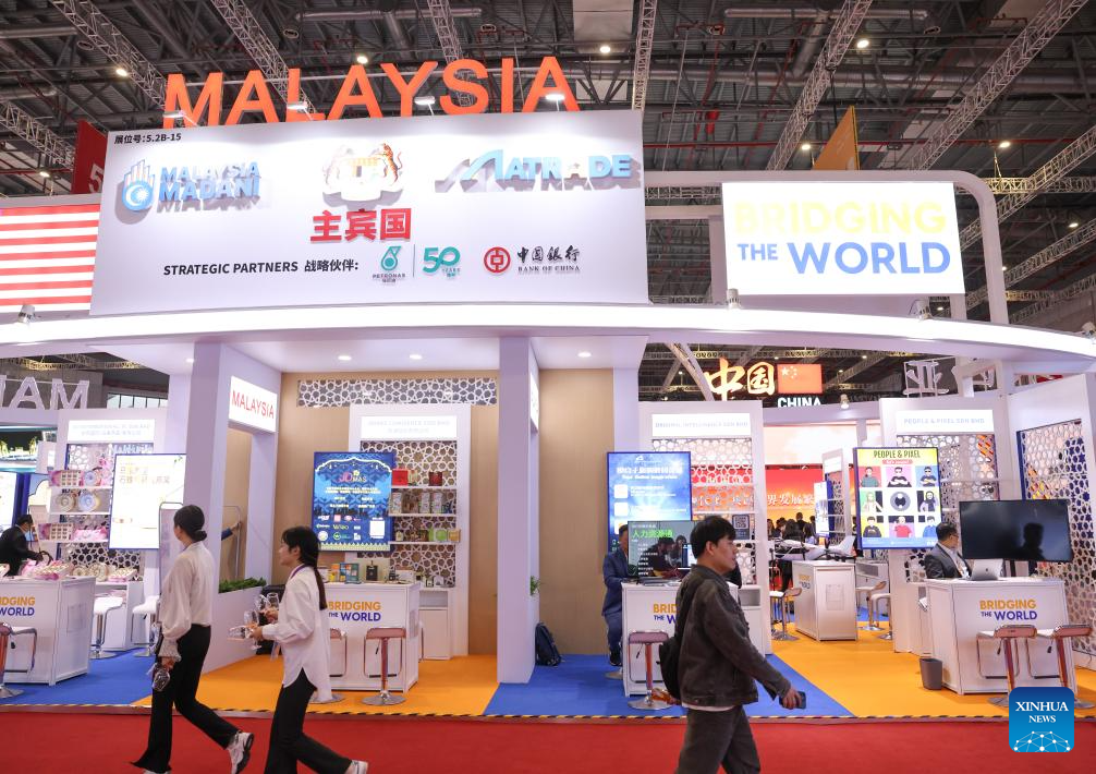 SHANGHAI, 5 noviembre, 2024 (Xinhua) -- Imagen del 5 de noviembre de 2024 del pabellón de Malasia durante la VII Exposición Internacional de Importaciones de China (CIIE, por siglas en inglés), en Shanghai, en el este de China. Una nueva edición de la CIIE, la primera de su tipo en el mundo dedicada a las importaciones, abrió sus puertas el martes en Shanghai. Francia, Malasia, Nicaragua, Arabia Saudita, Tanzania y Uzbekistán son los países invitados de honor en la VII CIIE. (Xinhua/Yin Gang)