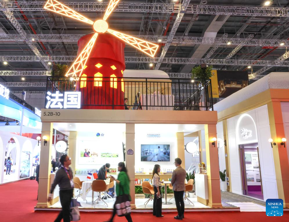SHANGHAI, 5 noviembre, 2024 (Xinhua) -- Imagen del 5 de noviembre de 2024 del pabellón de Francia durante la VII Exposición Internacional de Importaciones de China (CIIE, por siglas en inglés), en Shanghai, en el este de China. Una nueva edición de la CIIE, la primera de su tipo en el mundo dedicada a las importaciones, abrió sus puertas el martes en Shanghai. Francia, Malasia, Nicaragua, Arabia Saudita, Tanzania y Uzbekistán son los países invitados de honor en la VII CIIE. (Xinhua/Yin Gang)