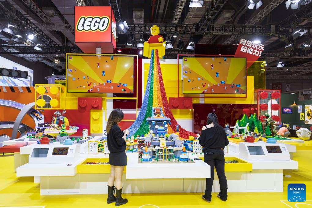 SHANGHAI, 5 noviembre, 2024 (Xinhua) -- Una instalación se presenta en el área de exhibición de Lego durante la VII Exposición Internacional de Importaciones de China (CIIE, por sus siglas en inglés), en Shanghai, en el este de China, el 5 de noviembre de 2024. Una nueva edición de la CIIE, la primera de su tipo en el mundo dedicada a las importaciones, abrió sus puertas el martes en Shanghai. (Xinhua/Wang Xiang)