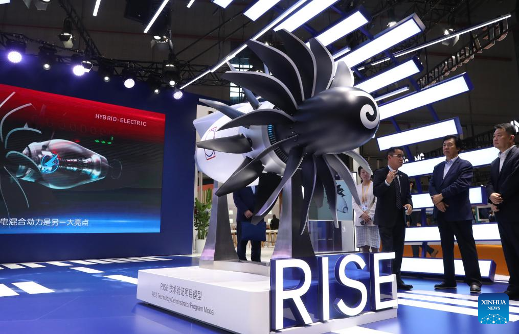 SHANGHAI, 5 noviembre, 2024 (Xinhua) -- Visitantes observan el modelo del programa de demostración de tecnología RISE en el área de exhibición de General Electric durante la VII Exposición Internacional de Importaciones de China (CIIE, por sus siglas en inglés), en Shanghai, en el este de China, el 5 de noviembre de 2024. Una nueva edición de la CIIE, la primera de su tipo en el mundo dedicada a las importaciones, abrió sus puertas el martes en Shanghai. (Xinhua/Fang Zhe)