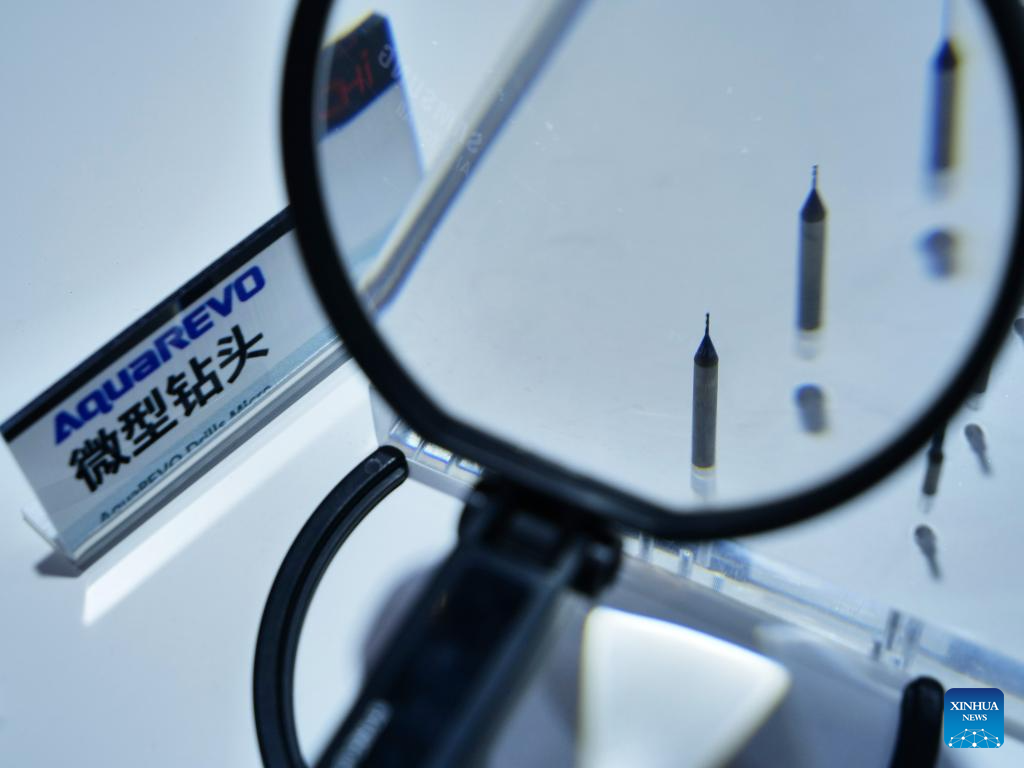 SHANGHAI, 5 noviembre, 2024 (Xinhua) -- Imagen del 5 de noviembre de 2024 de una microbroca en exhibición en el estand de Nachi-Fujikoshi Corp. durante la VII Exposición Internacional de Importaciones de China (CIIE, por sus siglas en inglés), en Shanghai, en el este de China. Una nueva edición de la CIIE, la primera de su tipo en el mundo dedicada a las importaciones, abrió sus puertas el martes en Shanghai. (Xinhua/Wang Yiliang)