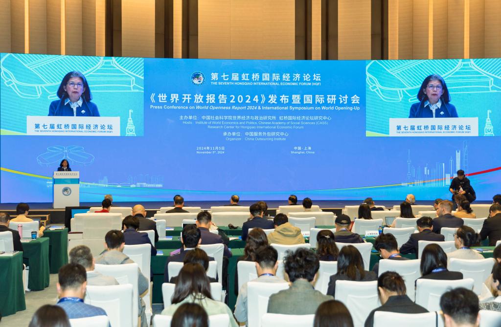 SHANGHAI, 6 noviembre, 2024 (Xinhua) -- Personas visitan el área de exposición de Industria Inteligente y Tecnología de la Información durante la VII Exposición Internacional de Importaciones de China (CIIE, por siglas en inglés), en Shanghai, en el este de China, el 6 de noviembre de 2024. La actual CIIE exhibe tecnología de vanguardia y equipos de alta gama, proporcionando una plataforma de comunicación para el sector de nuevos materiales. (Xinhua/Yin Gang)