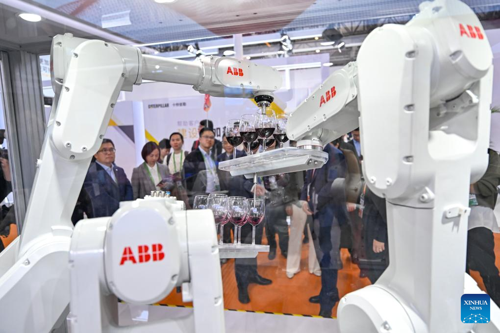 SHANGHAI, 6 noviembre, 2024 (Xinhua) -- Visitantes observan la demostración del desafío de alto rendimiento de una cabina de control en el estand de ABB en el área de exposición de Industria Inteligente y Tecnología de la Información durante la VII Exposición Internacional de Importaciones de China (CIIE, por siglas en inglés), en Shanghai, en el este de China, el 6 de noviembre de 2024. La actual CIIE exhibe tecnología de vanguardia y equipos de alta gama, proporcionando una plataforma de comunicación para el sector de nuevos materiales. (Xinhua/Zhang Cheng)