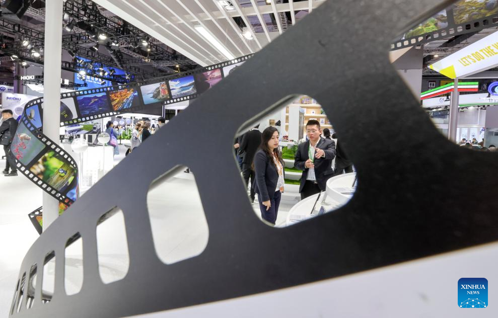 SHANGHAI, 6 noviembre, 2024 (Xinhua) -- Un fotógrafo toma una imagen de una demostración de movimiento estereoscópico multieje en el área de exposición de Industria Inteligente y Tecnología de la Información durante la VII Exposición Internacional de Importaciones de China (CIIE, por siglas en inglés), en Shanghai, en el este de China, el 6 de noviembre de 2024. La actual CIIE exhibe tecnología de vanguardia y equipos de alta gama, proporcionando una plataforma de comunicación para el sector de nuevos materiales. (Xinhua/Yin Gang)