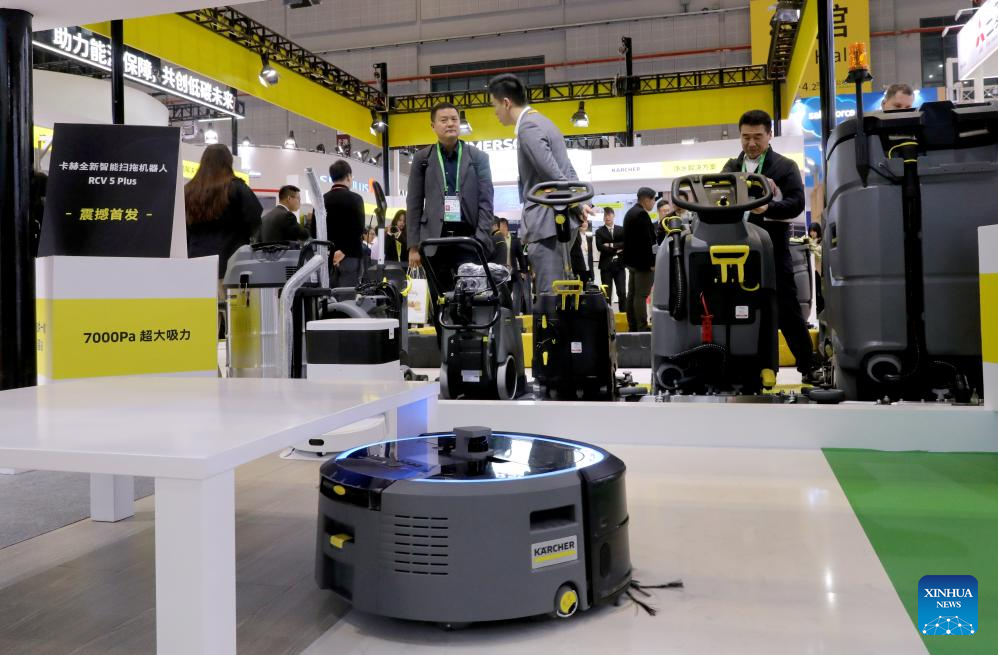 SHANGHAI, 6 noviembre, 2024 (Xinhua) -- Imagen del 6 de noviembre de 2024 del robot de limpieza RCV 5 Plus de Karcher durante la VII Exposición Internacional de Importaciones de China (CIIE, por sus siglas en inglés), en Shanghai, en el este de China. Durante la VII CIIE en curso, muchas nuevas tecnologías, logros y productos se presentaron al público por primera vez. (Xinhua/Fang Zhe)
