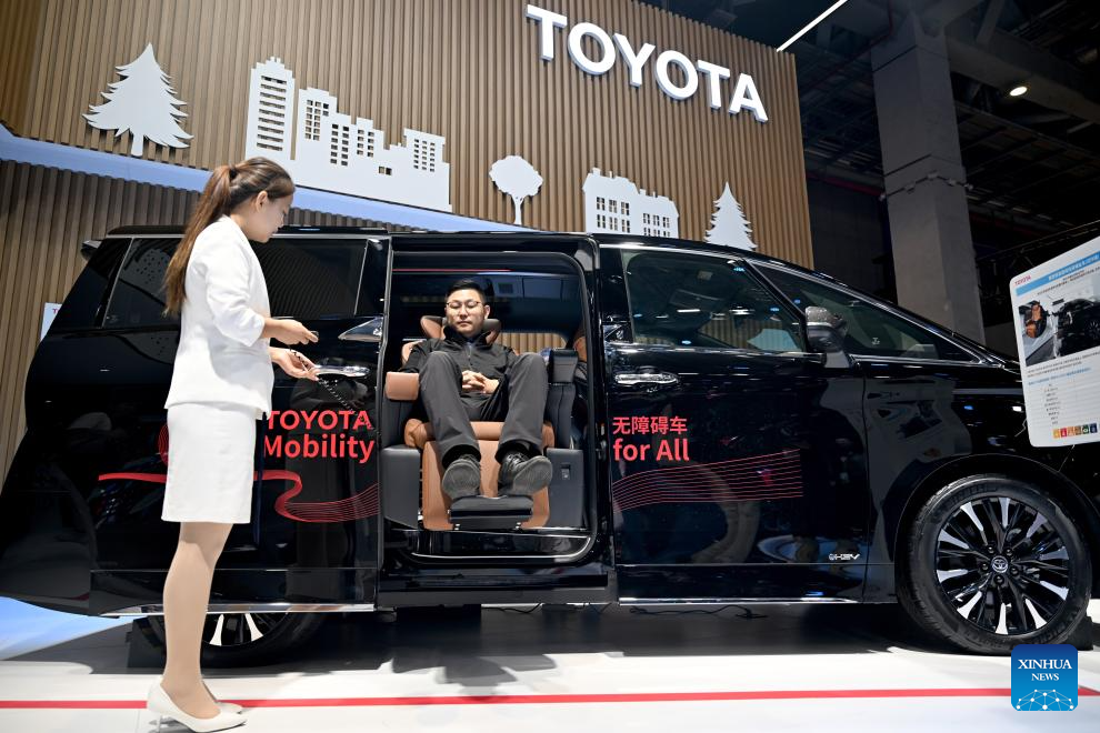 SHANGHAI, 6 noviembre, 2024 (Xinhua) -- Un visitante se informa sobre un vehículo de Movilidad para Todos de Toyota durante la VII Exposición Internacional de Importaciones de China (CIIE, por sus siglas en inglés), en Shanghai, en el este de China, el 6 de noviembre de 2024. Durante la VII CIIE en curso, muchas nuevas tecnologías, logros y productos se presentaron al público por primera vez. (Xinhua/Chen Haoming)