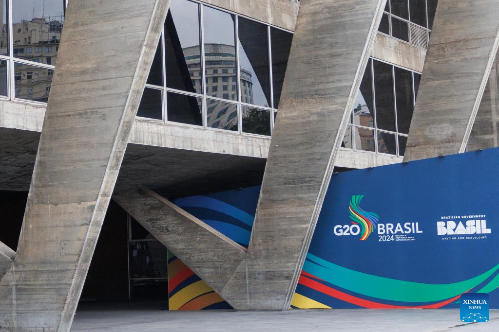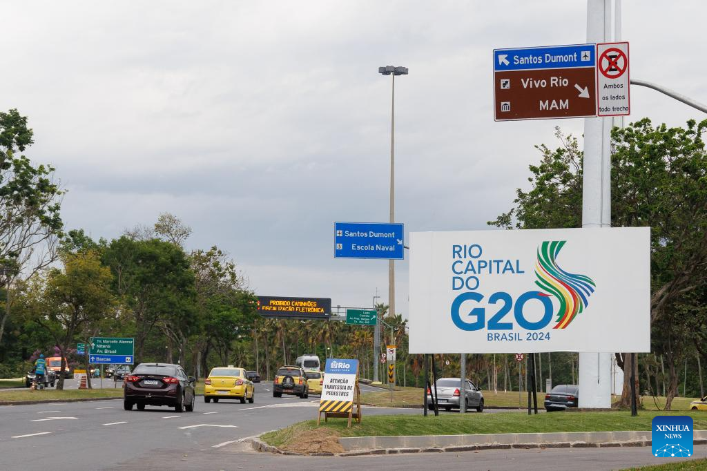 RIO DE JANEIRO, 8 noviembre, 2024 (Xinhua) -- Imagen del 8 de noviembre de 2024 de un cartel que anuncia la Cumbre de Líderes del Grupo de los Veinte (G20), en Río de Janeiro, Brasil. La Cumbre de Líderes del G20 tendrá lugar en la ciudad brasileña de Río de Janeiro los días 18 y de 19 de noviembre. (Xinhua/Claudia Martini)
