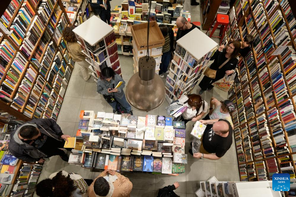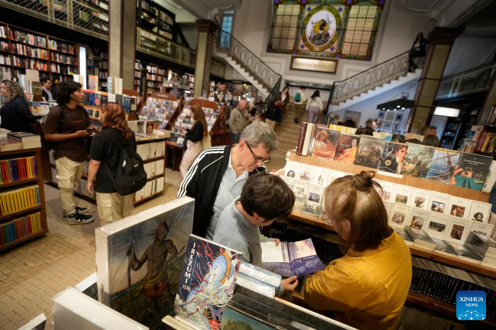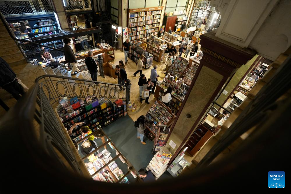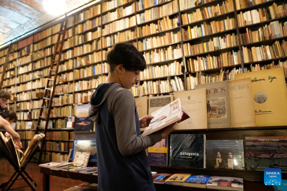 MONTEVIDEO, 9 noviembre, 2024 (Xinhua) -- Imagen del 8 de noviembre de 2024 de personas asistiendo a una librería durante la octava edición de La Noche de las Librerías, en Montevideo, capital de Uruguay. (Xinhua/Nicolás Celaya)