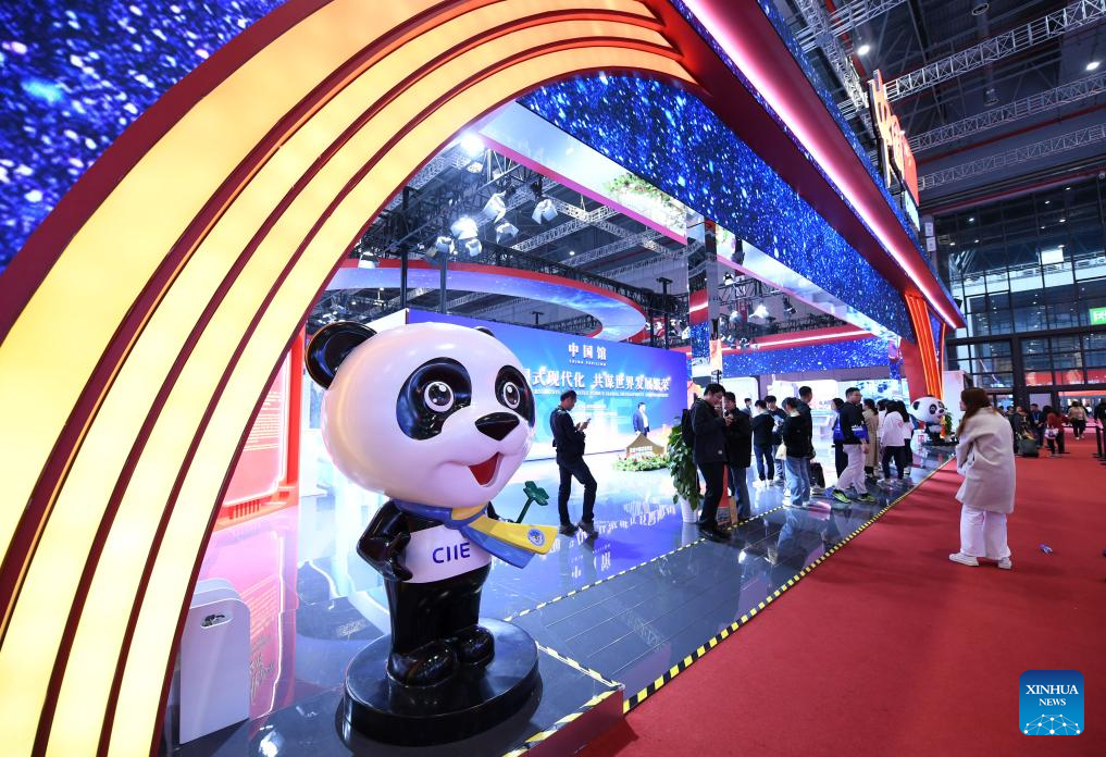 SHANGHAI, 10 noviembre, 2024 (Xinhua) -- Personas visitan el Pabellón de China en la VII Exposición Internacional de Importaciones de China (CIIE, por sus siglas en inglés), en Shanghai, en el este de China, el 10 de noviembre de 2024. La VII CIIE concluyó aquí el domingo. (Xinhua/Jin Mamengni)