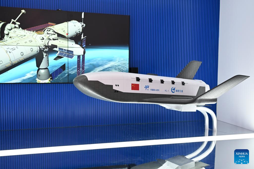 ZHUHAI, 11 noviembre, 2024 (Xinhua) -- Imagen sin fechar de una maqueta del transbordador espacial de carga chino Haoloong, que debutará en la XV Exposición Internacional Aeronáutica y Aeroespacial de China, también conocida como Airshow China, en Zhuhai, en la provincia de Guangdong, en el sur de China. Un modelo del transbordador espacial de carga chino Haoloong debutará en la XV Exposición Internacional Aeronáutica y Aeroespacial de China, también conocida como Airshow China, anunció el lunes la Corporación de la Industria de la Aviación de China. (Xinhua)