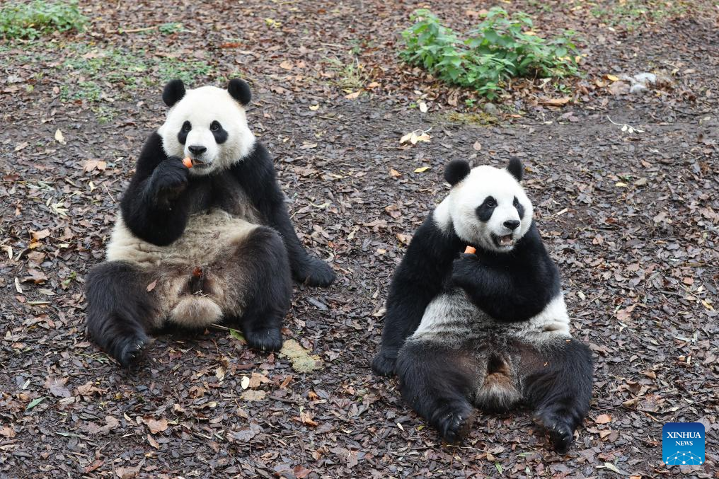 BRUGELETTE, 11 noviembre, 2024 (Xinhua) -- Imagen del 10 de noviembre de 2024 de los gemelos de panda gigante Bao Di (i) y Bao Mei vistos en el zoológico Pairi Daiza, en Brugelette, Bélgica. Personas despidieron el domingo al panda gigante Tian Bao y a los gemelos Bao Di y Bao Mei en el zoológico Pairi Daiza, ya que regresarán a China el 10 de diciembre. (Xinhua/Zhao Dingzhe)
