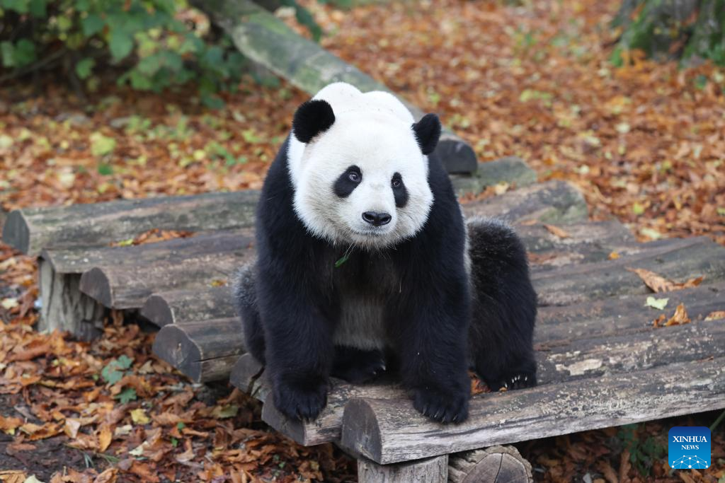 BRUGELETTE, 11 noviembre, 2024 (Xinhua) -- Imagen del 10 de noviembre de 2024 del panda gigante Tian Bao visto en el zoológico Pairi Daiza, en Brugelette, Bélgica. Personas despidieron el domingo al panda gigante Tian Bao y a los gemelos Bao Di y Bao Mei en el zoológico Pairi Daiza, ya que regresarán a China el 10 de diciembre. (Xinhua/Zhao Dingzhe)