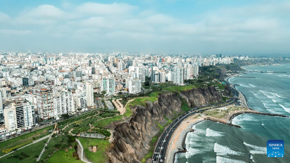 LIMA, 12 noviembre, 2024 (Xinhua) -- Imagen aérea tomada con un dron el 13 de octubre de 2024 de una vista de Lima, Perú. Lima, la capital y ciudad más grande de Perú, es el centro político, económico y cultural del país. Está compuesta por la sección histórica y la sección emergente, aunque la primera ha sido catalogada como patrimonio cultural de la humanidad gracias a los numerosos sitios de reliquias que allí se encuentran. (Xinhua/Li Muzi)