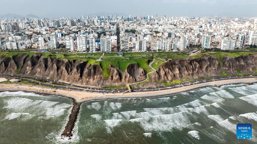 LIMA, 12 noviembre, 2024 (Xinhua) -- Imagen del 6 de noviembre de 2024 de la línea costera en el Parque del Amor, en Lima, Perú. Lima, la capital y ciudad más grande de Perú, es el centro político, económico y cultural del país. Está compuesta por la sección histórica y la sección emergente, aunque la primera ha sido catalogada como patrimonio cultural de la humanidad gracias a los numerosos sitios de reliquias que allí se encuentran. (Xinhua/Li Mengxin)