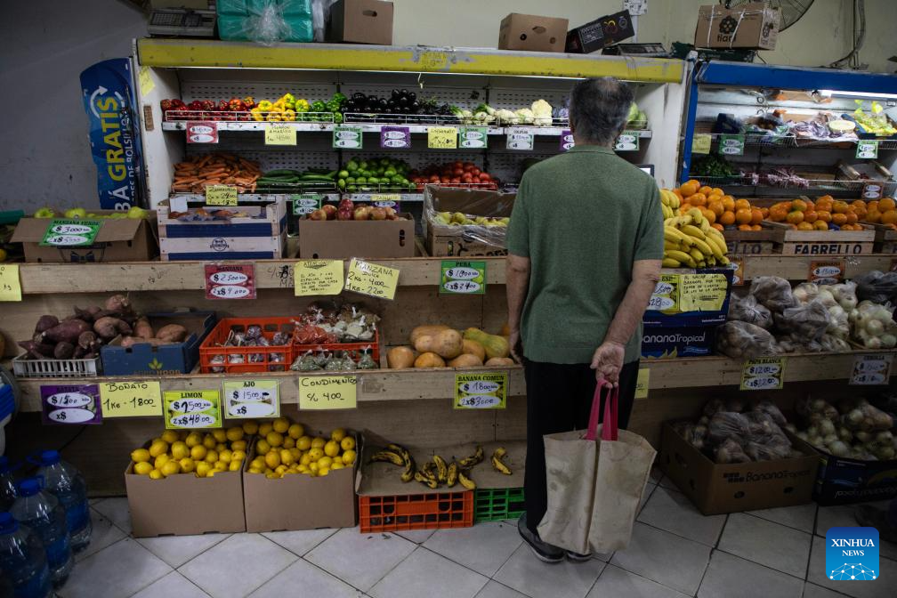 BUENOS AIRES, 13 noviembre, 2024 (Xinhua) -- Un hombre observa verduras en una tienda, en la ciudad de Buenos Aires, capital de Argentina, el 13 de noviembre de 2024. (Xinhua/Martín Zabala)
