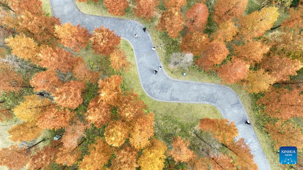 CHONGQING, 13 noviembre, 2024 (Xinhua) -- Vista aérea tomada con un dron el 11 de noviembre de 2024 de personas divirtiéndose en un punto escénico, en el distrito autónomo tujia y miao de Youyang, en la municipalidad de Chongqing, en el suroeste de China. (Xinhua/Qiu Hongbin)