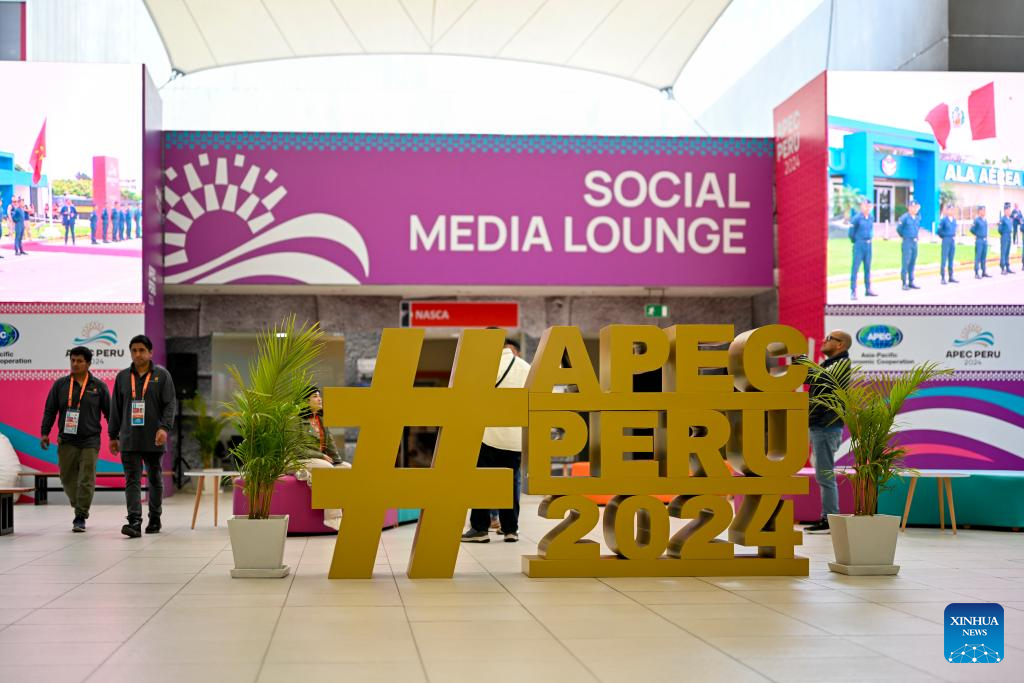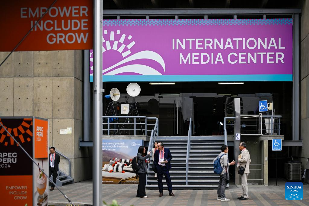 LIMA, 13 noviembre, 2024 (Xinhua) -- Imagen del 12 de noviembre de 2024 de una vista interior del Centro Internacional de Prensa de APEC 2024, en Lima, Perú. La 31ª Reunión de Líderes Económicos de APEC se llevará a cabo en Lima. (Xinhua/Li Muzi)